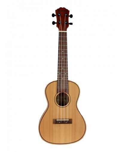 Ukulélé Concert, ultrafin (épaisseur 59 mm), table cèdre massif, fond & éclisses sapele, dos bombé, naturel pores ouverts