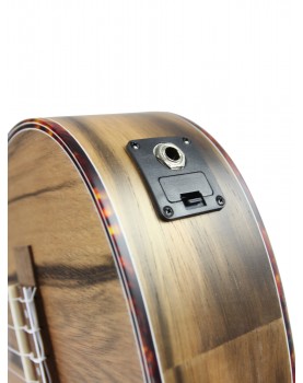 Ukulélé Concert, table dao, fond & éclisses dao, manche okoume, touche & chevalet noyer, sillets os, cordes Aquila, préampli EQ-7B, avec housse.