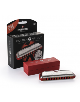 SERIE GOLDEN MELODY Le Golden Melody Progressive, le seul harmonica diatonique Hohner professionnel accordé à tempérament égal, propose un nouveau design innovant pour optimiser sa prise en main, sa stabilité et son étanchéité. Tout en conservant la sonorité chaleureuse qui en a fait un favori des harmonicistes dans de nombreux styles différents, le nouveau Golden Melody Progressive offre ainsi un son plus plein et puissant, combiné à un confort de jeu, une prise en main et une maniabilité optimale. • Capots en acier inoxydable de forme ergonomique pour une manipulation confortable et une plus grande stabilité. • Assemblage innovant avec des vis Torx à têtes fraisées. • Peigne avec une embouchure ultraglide polie et bords arrondis pour un meilleur confort. • Optimisation de l’étanchéité et du volume grâce à la nouvelle conception du peigne et des capots. • Accordage tempéré, idéal pour les mélodies à note unique jouées dans différents styles. • Bel étui robuste, en carton imprimé de haute qualité. Disponible en tonalités de C - D - E - F - G - A - B - Ab - Bb - Db - Eb - Fa#.