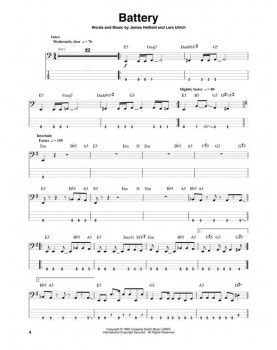 The Bass Play-Along Series will help you play your favorite songs quickly and easily! Just follow the tab, listen to the audio to hear how the bass should sound, and then play along using the separate backing tracks. The melody and lyrics are also included in the book in case you want to sing, or to simply help you follow along. The audio is available online for download or streaming, and it is enhanced so you can adjust the recording to any tempo without changing pitch! 8 songs: Battery - Creeping Death - Fade to Black - For Whom the Bell Tolls - Master of Puppets - One - Seek & Destroy - Welcome Home (Sanitarium).