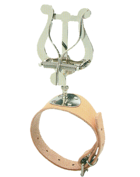 Bracelet en cuir se fixant sur l'avant-bras gauche. Tige et lyre métal.