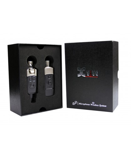Système sans-fil pour micro U3, émetteur et récepteur rechargeables fonctionnant sur la bande de fréquence 2.4 GHz, bouton Mic/Line sur transmetteur, conversion A/D 24-bit/48kHz, transmission numérique non compressée, 6 canaux, portée jusqu'à 20 m (sans obstacles), réponse en fréquence : 20Hz à 20 kHz, latence inférieure à 5 ms, plage dynamique 110 dB, environ 5 heures d'autonomie, câble USB inclus, boitiers robustes en ABS, poids : 95g par unité.