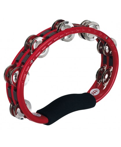 Tambourin ABS demi-lune, 2 rangées cymbalettes acier nickelé, sans attache, poignée ergonomique, rouge